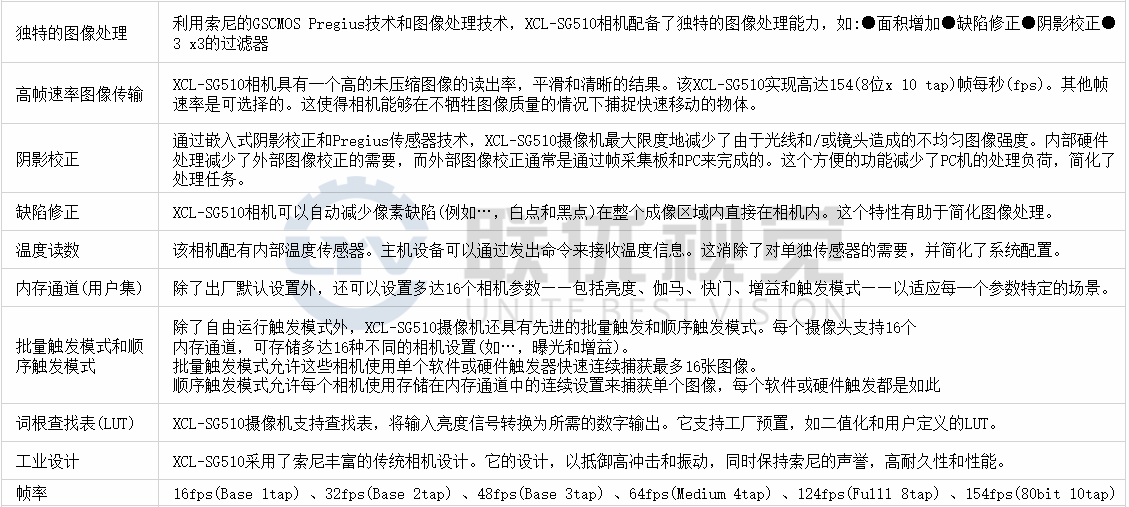 ●該XCL-SG510(黑白)結(jié)合了索尼技術(shù)的最佳在一個(gè)方便的形式因素,這是優(yōu)化的工業(yè)視覺和非制造的視覺市場(chǎng)使用。