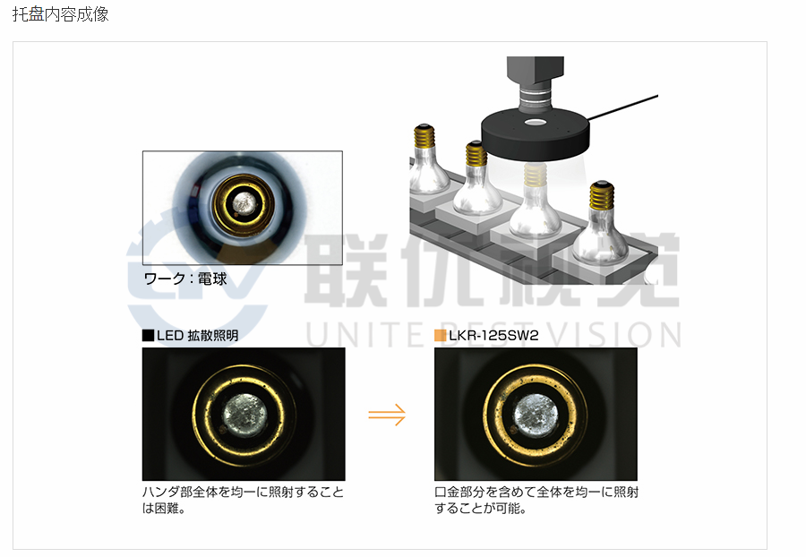 從發(fā)光表面以一定角度朝向中心向工件照射均勻的散射光