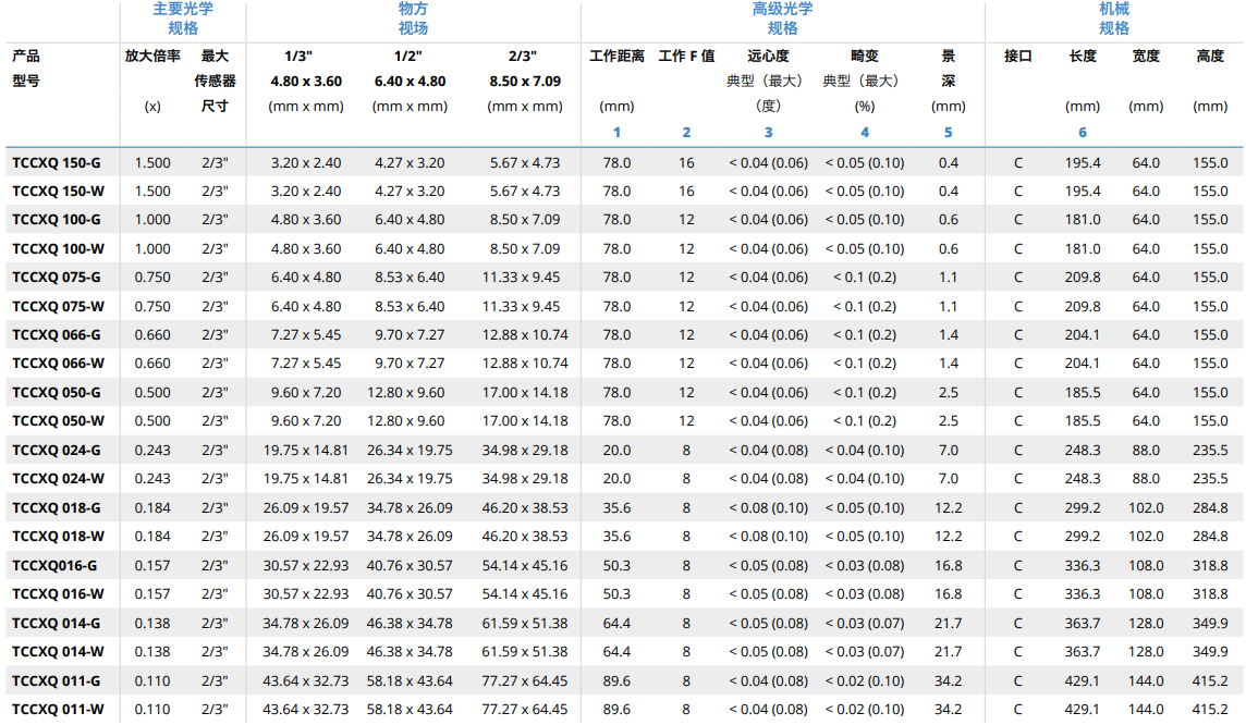 • TCCXQ 光學(xué)裝置結(jié)合了 TC 和 TCLWD 遠(yuǎn)心鏡頭的超高光學(xué)性能以及 LTCLHP 系列精確可靠照明的功能。