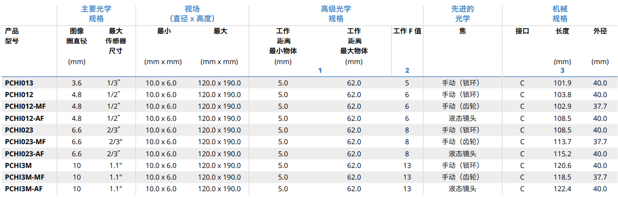 新的聚焦環(huán)版本 手動調(diào)焦從未如此簡單! 與液態(tài)鏡頭技術的新集成 PCHI AF可實現(xiàn)極為快速和可重復的改變焦點。
