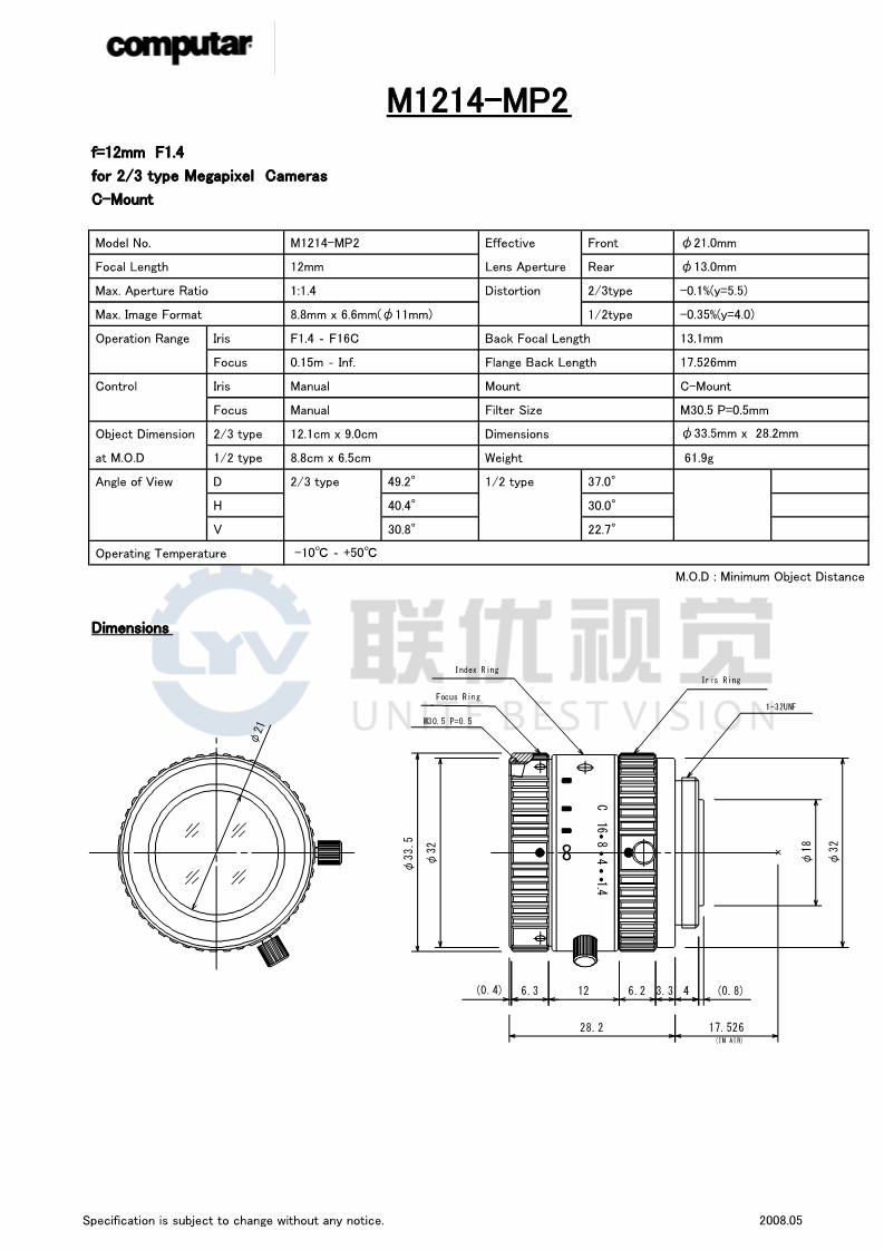 ●具有焦點和光圈鎖定調(diào)節(jié)鏍釘;